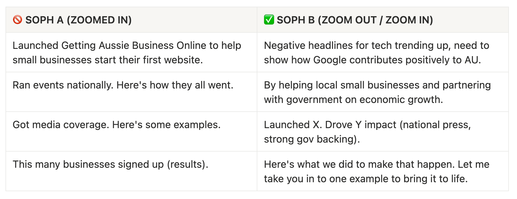 2. “Zooming out. We’re trying to [strategic outcome]. To get there I recommend we…”